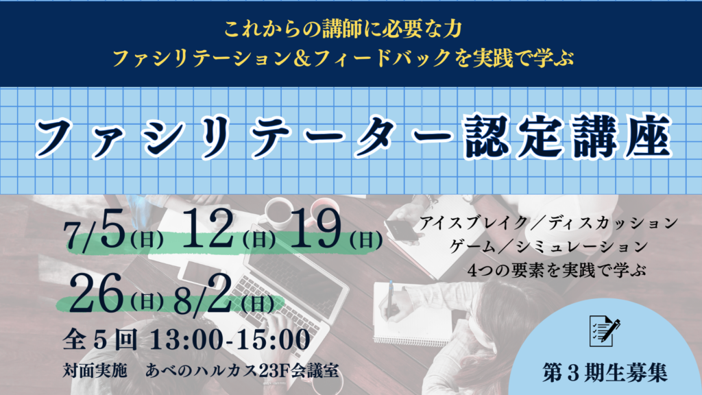 授業や研修で活用する4つの過程を実践的に体得し、第5回では実際に学んだ知識を